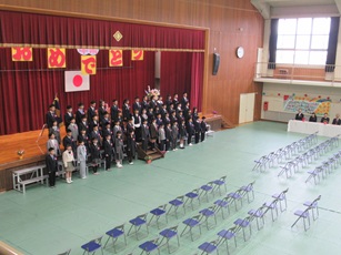 体育館横の桜の花も咲き始め、春の訪れが感じられる今日、58名の卒業生が本校を巣立っていきました。「別れのことば」では、在校生が6年生への尊敬や感謝の思いを伝え、6年生はこれまでの思い出を振り返るとともに、後輩たちへ励ましを送り、ご家族に感謝の思いを伝えました。美しい歌声が式典に花を添え、たくさんの保護者や来賓の皆様に見守られながら、温かい雰囲気の中、素晴らしい卒業式を行うことができました。