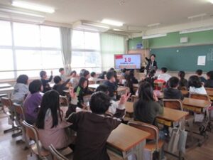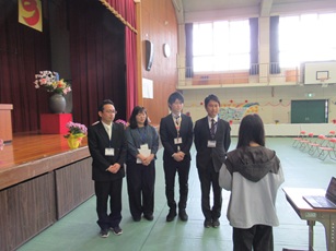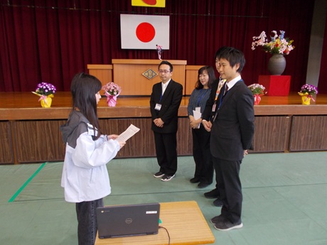 4月9日、新学期が始まりました。登校してきた子どもたちは掲示板へと急ぎます。新しい学級のメンバーを見て歓声が上がっていました。また、始業式に先立って、新任式を行いました。今年度より新しくお迎えした先生に、代表児童が小津小学校の紹介をして、本校の公式キャラクターである「らくぼう」バッジを渡しました。