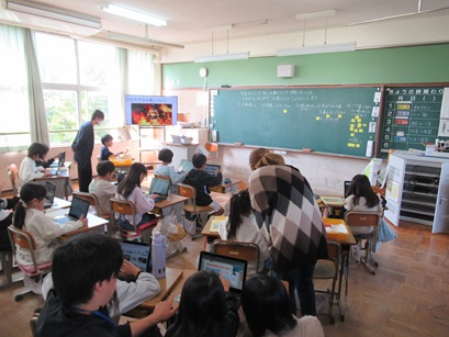 3年生では、PTA会員による学習ボランティアを行いました。3年生は今、社会科の授業で、まちを守る仕事のスライドづくりをしています。保護者の方がローマ字入力を手伝ってくださったり、出来上がったスライドの発表練習を聞いてくださったりして、子どもたちの学習がぐんと進みました。