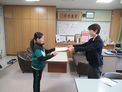 また、お昼休みには、先日行われた守山市児童科学研究発表会で優秀な成績を収めた児童の表彰を行いました。海辺で力なく漂流していたタツノオトシゴを見つけ、どうすれば元気に育てることができるか試行錯誤した研究です。塩分濃度の調整やえさのやり方など、生育環境を整えて粘り強く生態を観察した点が評価されました。