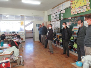 12月2日、地域学校協働活動の一環として、自治会長の皆さんによる授業参観と給食の試食を行いました。子どもたちの活動の様子を見ていただいた後、校長室で給食を食べました。中には自分の「おじいちゃん」を見つけて喜んでいる子も…。地域の皆さんに見守っていただいて、温かい時間が流れました。その後、小津小学校を会場に、自治会長会が行われました。