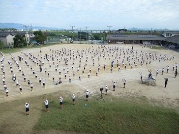 運動会に向けて(全校練習その1) 2025年10月14日 最終更新日時 : 2025年10月14日 ozu_admin 1・2時間目に今年度初めての全校練習を行いました。開会式の並び方を覚えたり、全員でラジオ体操の練習をしたりしました。1年生の子どもたちも、379人で行う運動会をイメージできたのではないでしょうか。