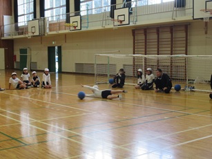 3年生がゴールボールの体験をしました。講師として市内在住の西村様、赤渕様にお越しいただきました。ゴールボールは、障スポでオープン競技として守山市で行われましたが、1チーム3名で、鈴の入った重さ1.25キログラムのゴム製のボールを転がし、ゴールを奪い合う球技です。光が入らないゴーグルを着ければ、誰でも参加できます。子どもたちはアイマスクをして、鈴の音を頼りに転がってくるボールを体全体で受け止めていました。障害のあるなしに関わらず誰でも参加できるユニバーサルスポーツが、気軽に楽しめるようになるといいなと思いました。