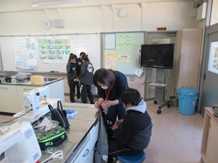 「子どもたちのために何かにかできることはないですか?」とPTA役員さんからお声掛けいただき、行事や実習の多いこの季節に、授業支援ボランティアをしていただくことになりました。先日の3年生に続き、この日は6年生の家庭科、ミシン掛けの支援です。アイロンをかけたり、しつけをしたり、返し縫をしたりと、たくさんの工程があるので、大人がたくさんいてくださるとほんとうに助かります。みな熱心に、エプロンの作成に取り組んでいました。